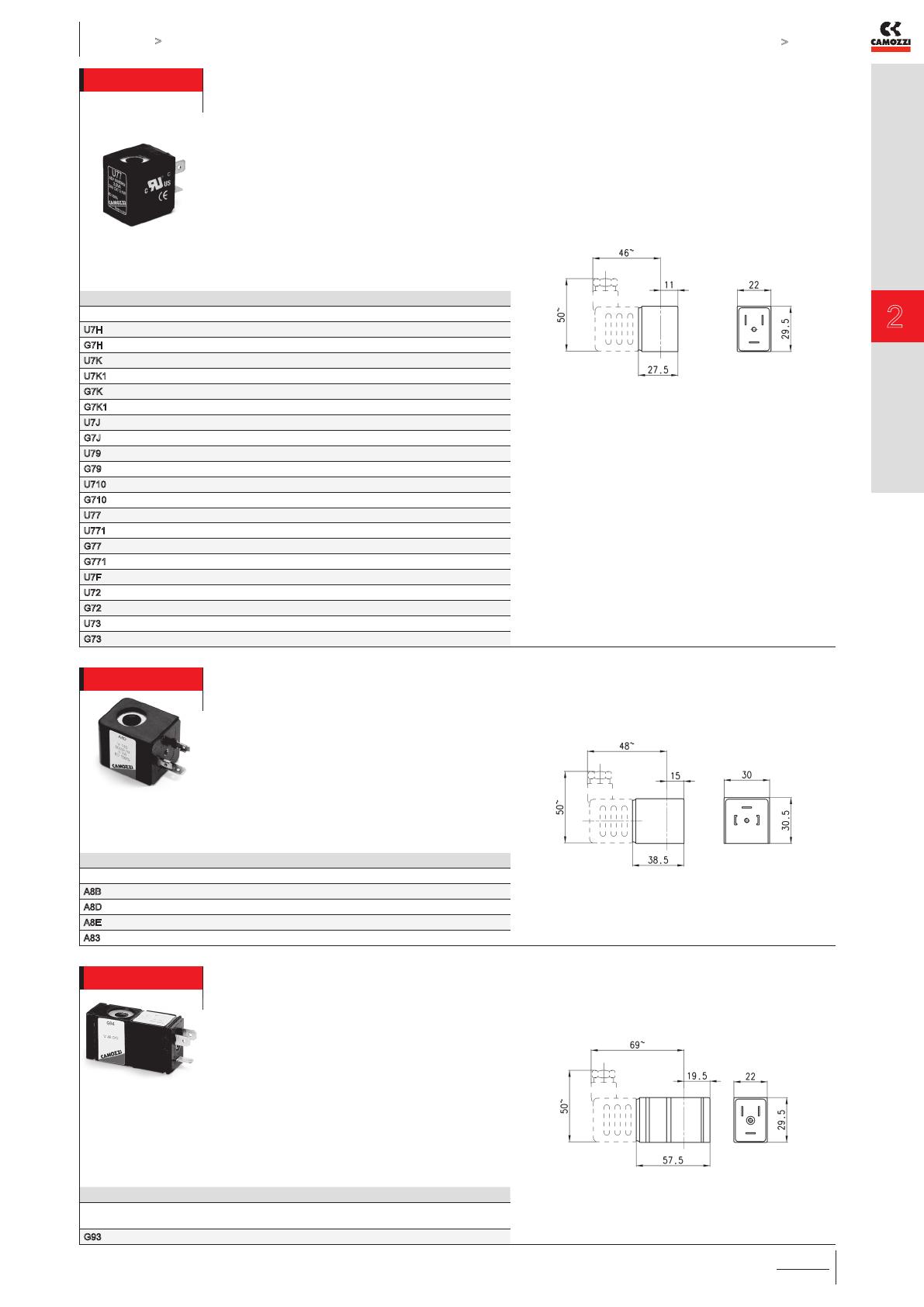 Bobines pour électrovannes et électro-distributeurs Séries A, 3, 4, 9 et NA.