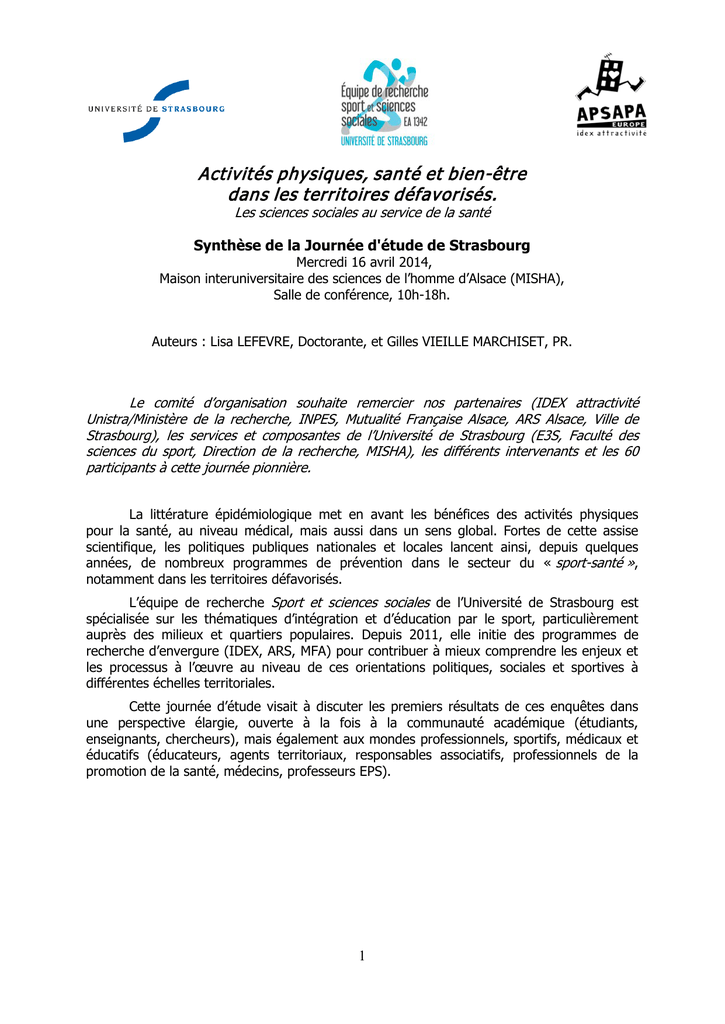 Activités physiques, santé et bien-être dans les territoires défavorisés.