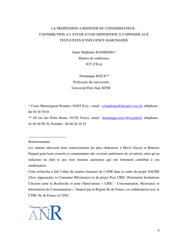 réaménagement du rapport aux acteurs marchands et/ou de retrait du marché (Dobré, 2002).