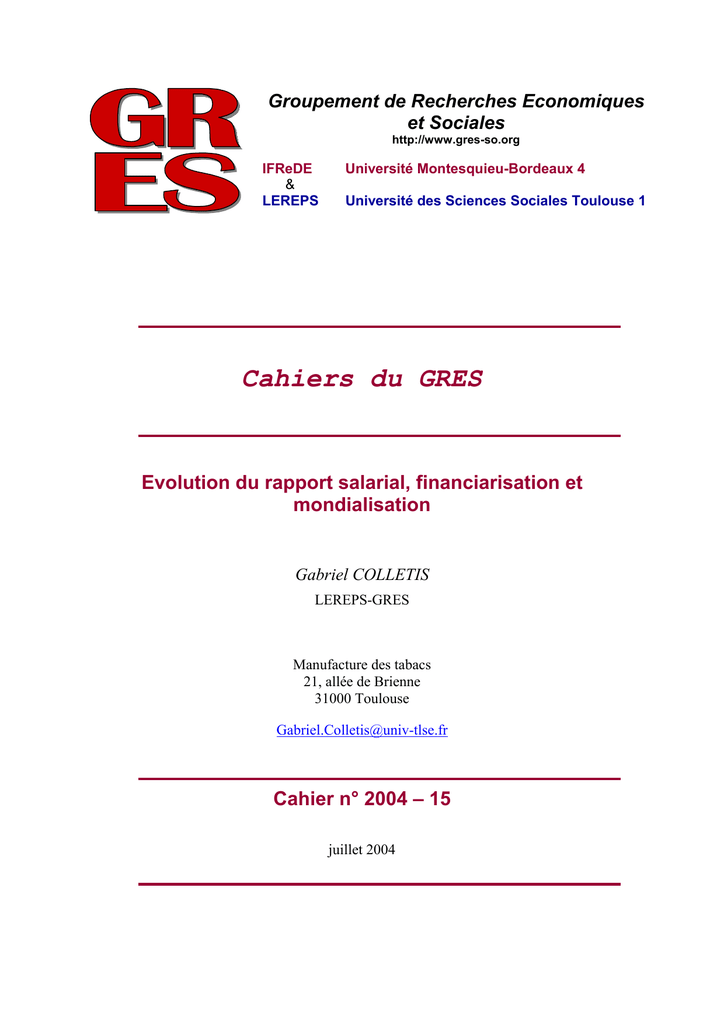 Key-words: Regulation mode, growth regime, employment relationship, fordism, knowledge-based