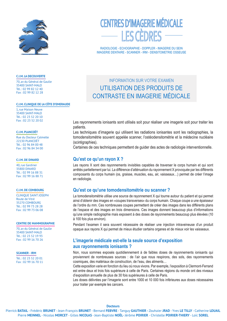 - Compte-rendu de l’examen avec mention du produit de contraste.