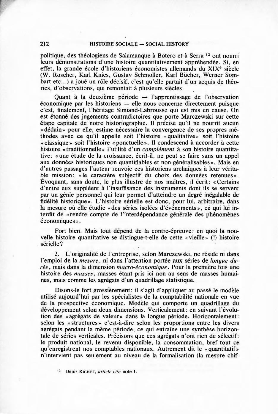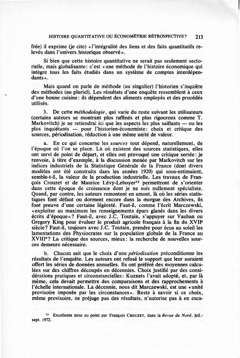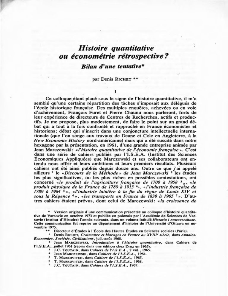 HISTOIRE QUANTITATIVE OU ÉCONOMÉTRIE RÉTROSPECTIVE?