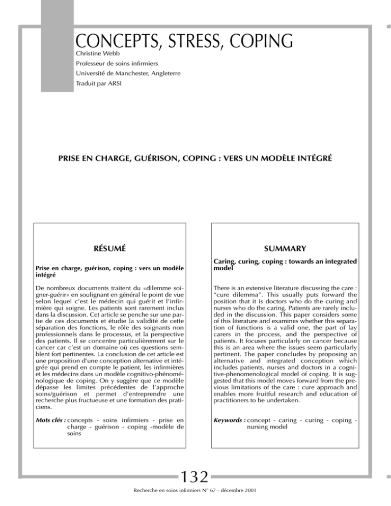 PRISE EN CHARGE, GUÉRISON, COPING : VERS UN MODÈLE INTÉGRÉ