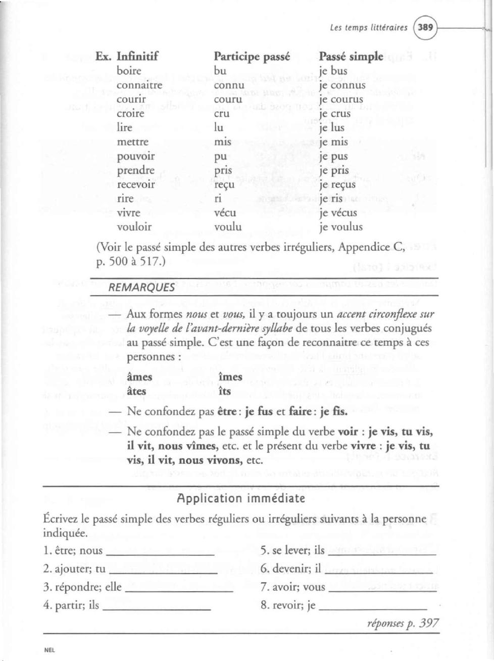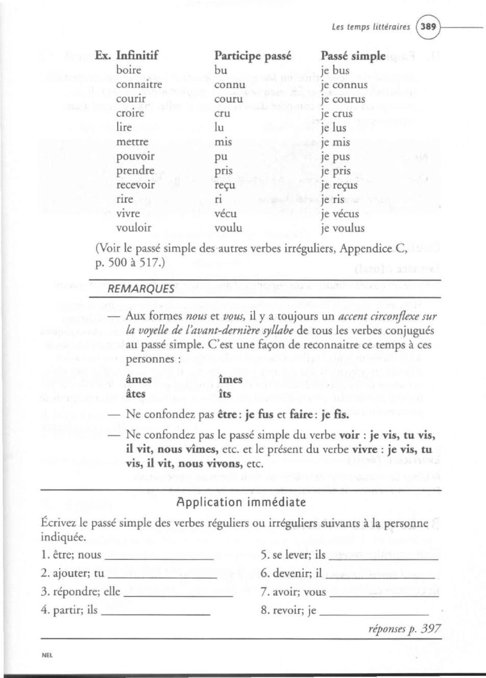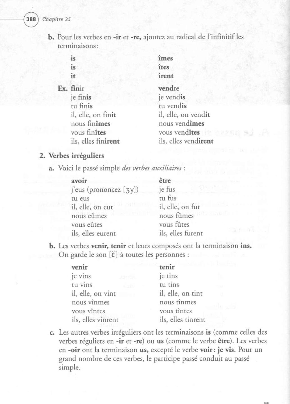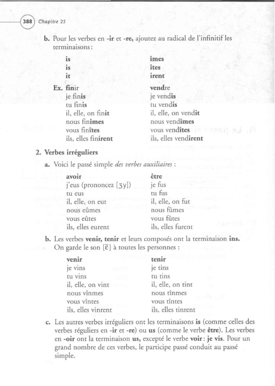(Voir Ie passe simple des autres verbes irreguliers, Appendice C,