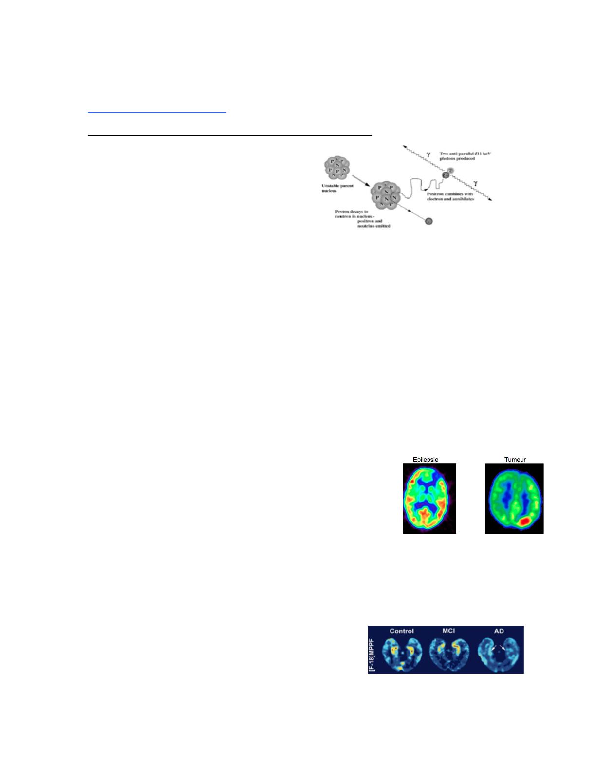 Exemple, TEP au 18F (fluorodeoxyglucose = FDG)