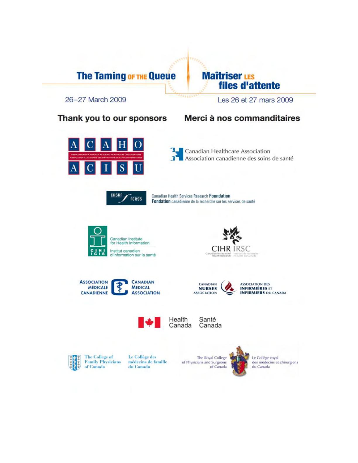 abordé les questions suivantes : la mesure, le contrôle et la gestion des temps d’attente; les