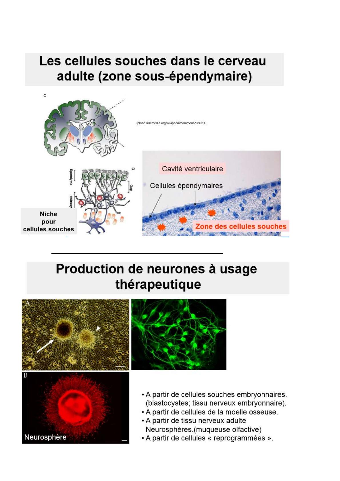 l’image ci-après des cellules souches présentes sous les cellules épendymaires, et chez l’embryon ce sont
