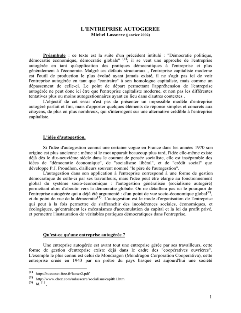 comme le sont de nombreuses associations ? D'ailleurs si la nature de l'entreprise autogérée