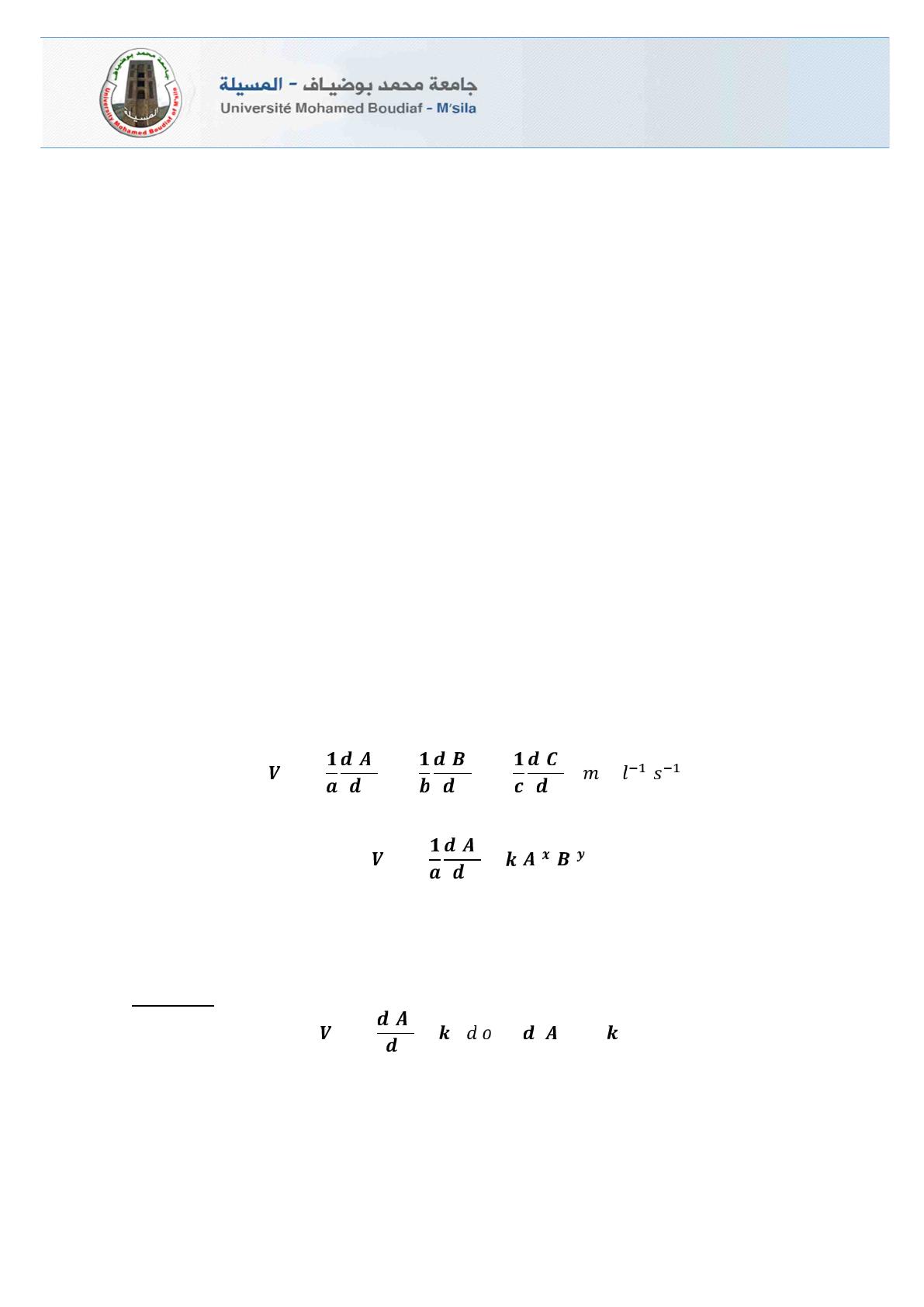 Les exposants xet ysont les ordres partiels de la réaction respectivement par rapport à A et B.