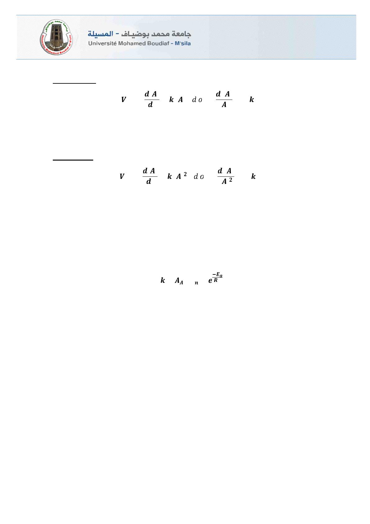 Où kest la constante de vitesse pour la réaction considérée (attention à ne pas confondre cette
