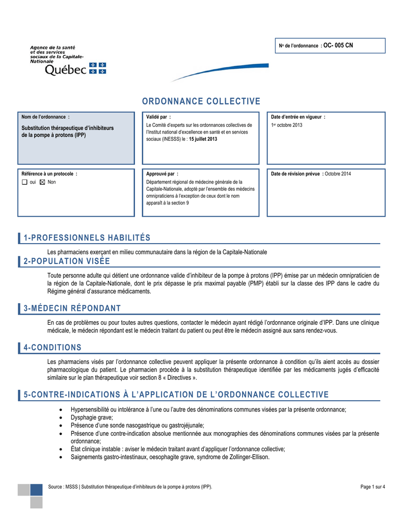 Source : MSSS | Substitution thérapeutique d’inhibiteurs de la pompe à protons (IPP). Page 2 sur 4