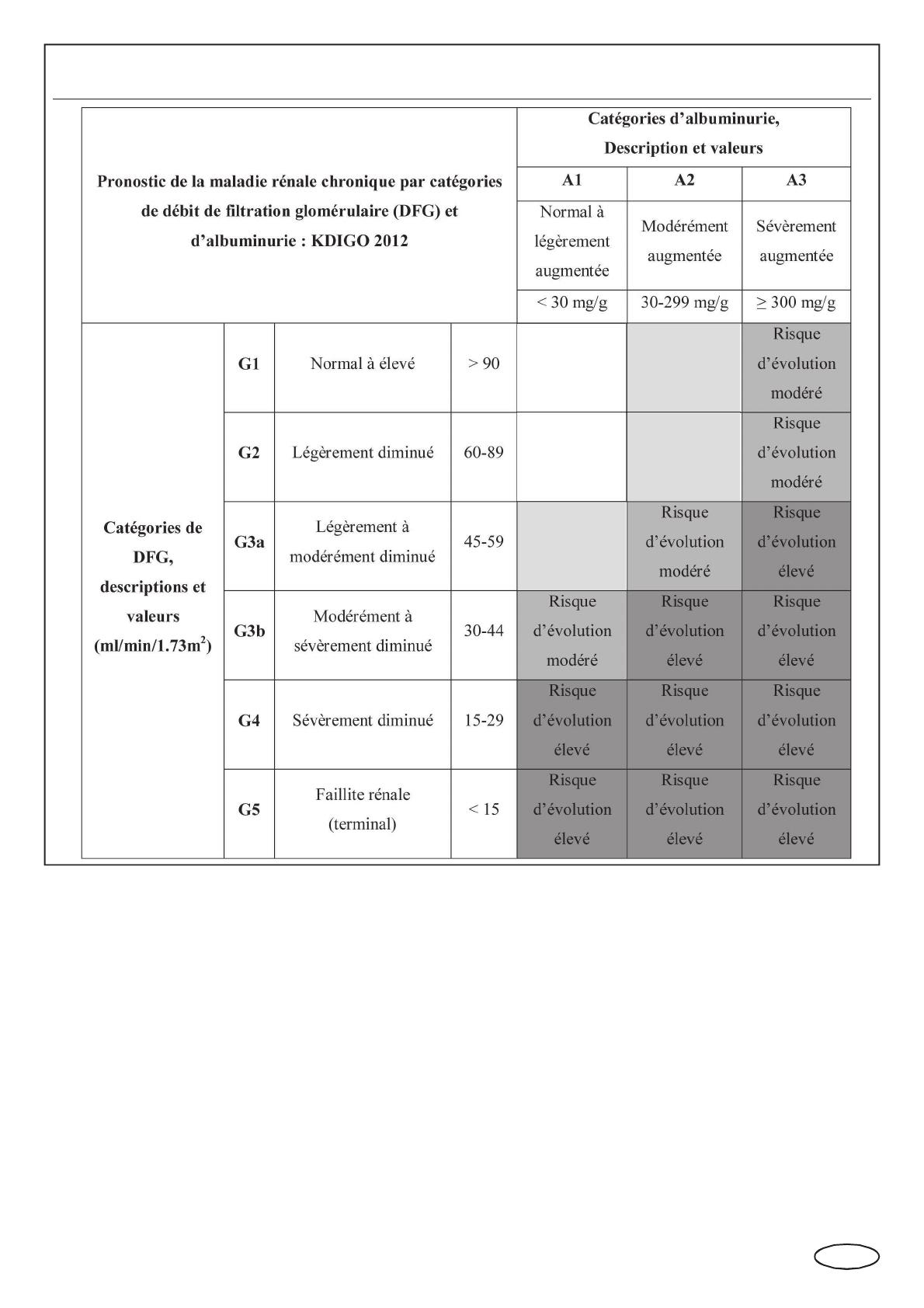 d’associer le niveau de DFG à l’intensité de protéinurie