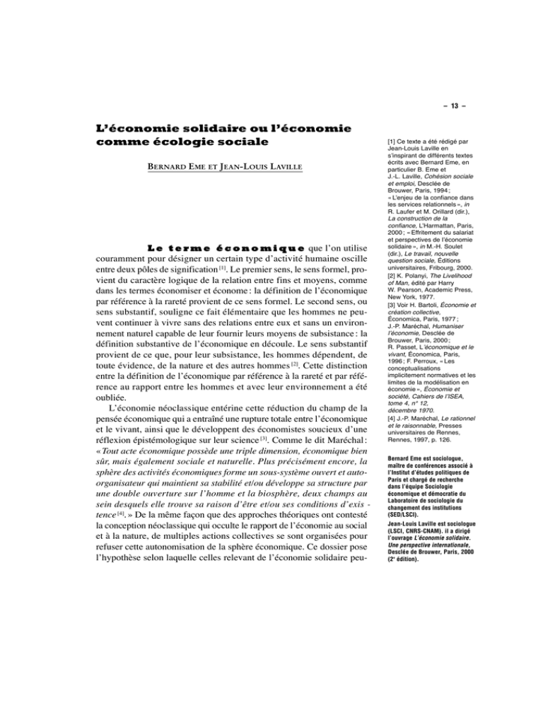 rapportés à une perspective d’économie solidaire parce qu’ils fondent