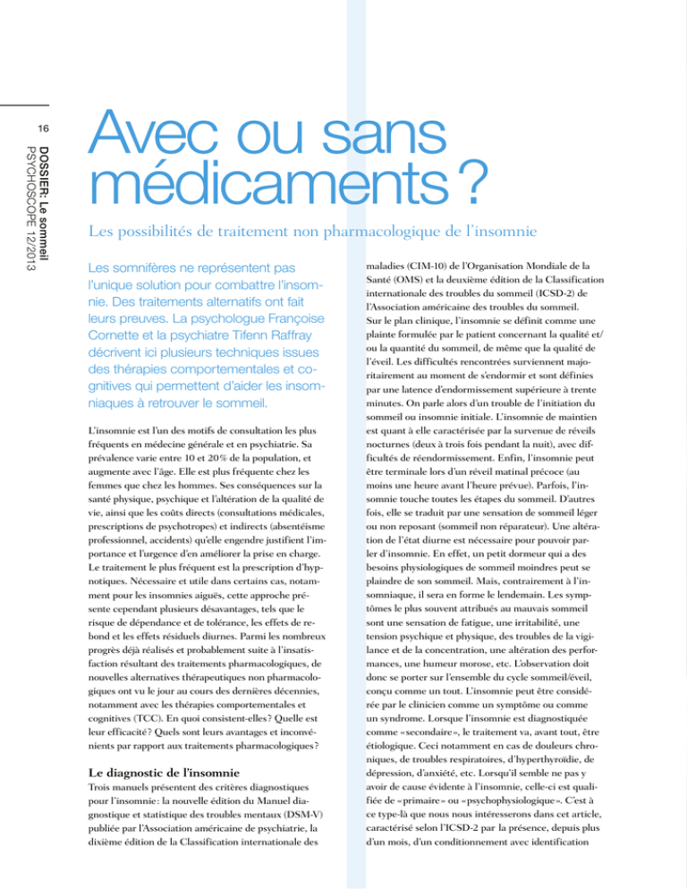 pharmacologiques de l’insomnie. Elles mettent en évi-