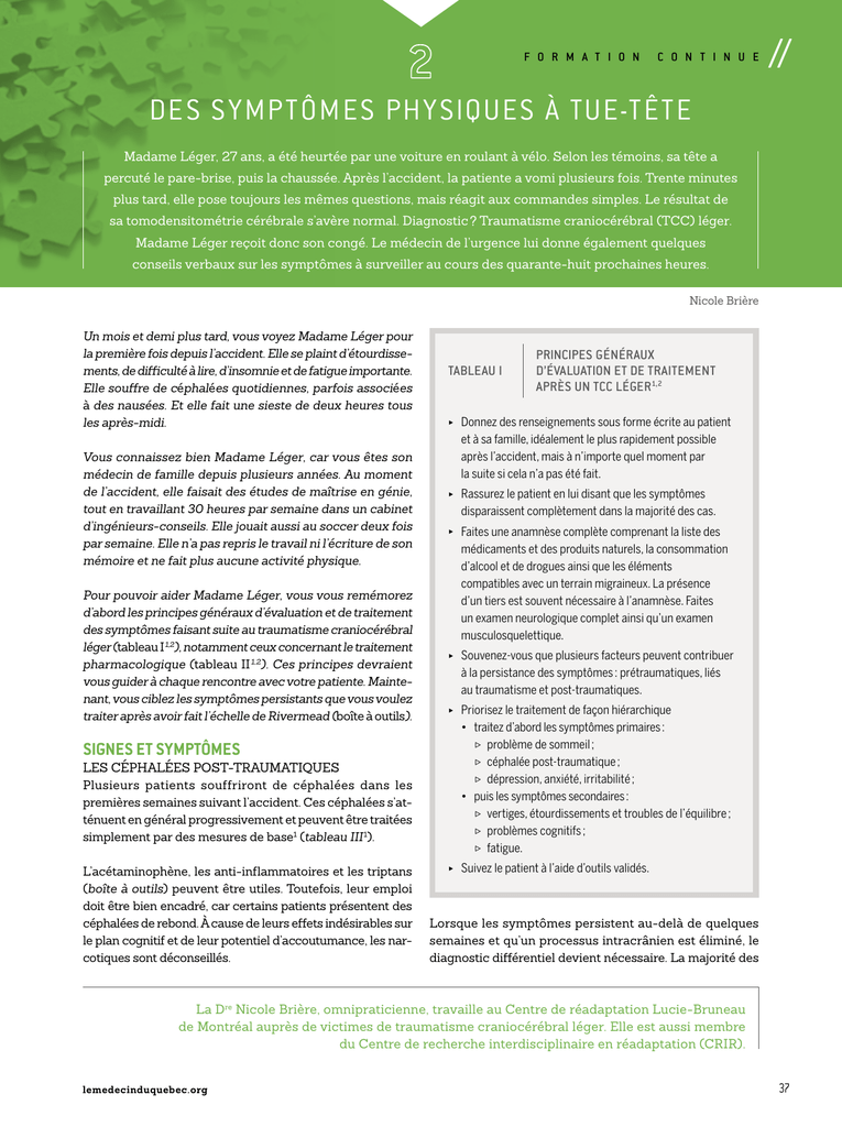 après un traumatisme craniocérébral léger9.