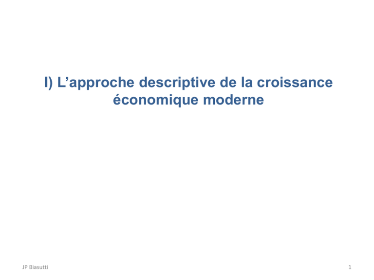 I) L`approche descriptive de la croissance économique moderne