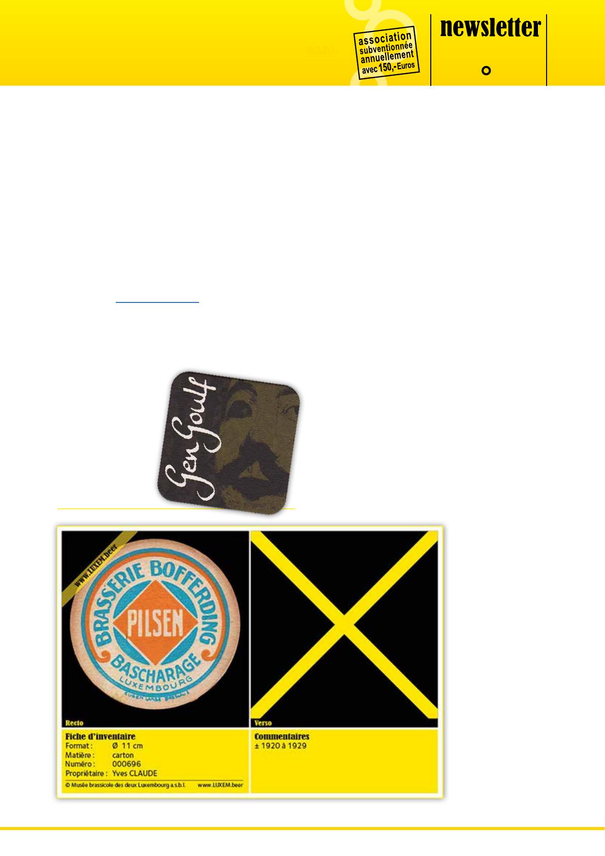 Musée brassicole des deux Luxembourg a.s.b.l. # 2007 61 00684 F6983 Secrétariat : 9, rue des Romains L-8833 Wolwelange