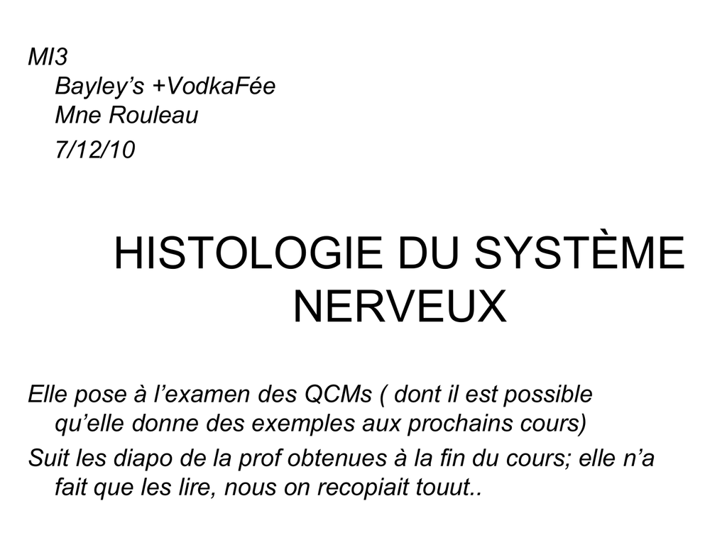 Histologie Système Nerveux Central