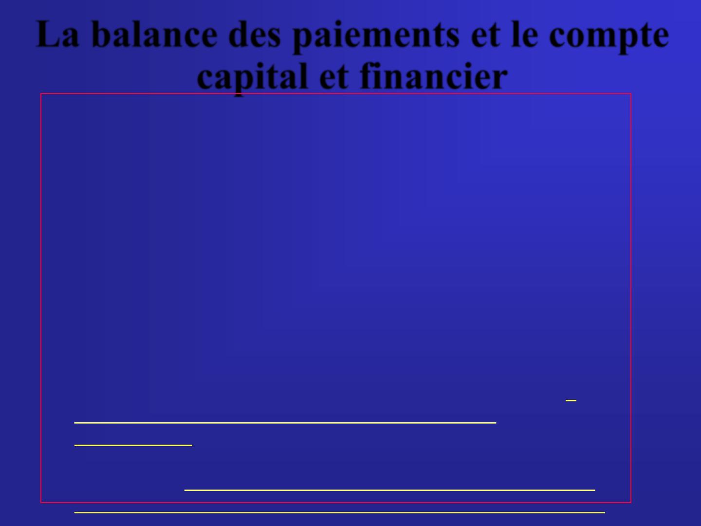 • Si on omet le poste “erreurs et omissions” de la balance