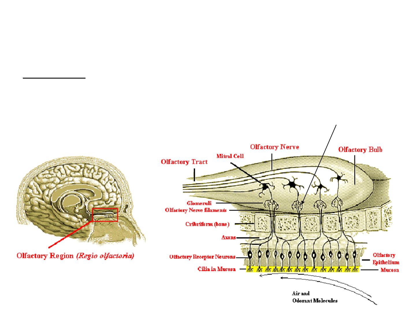 Localisation : dans cavité nasale : épithélium olfactif (petite région ~ 5 cm2 où ~