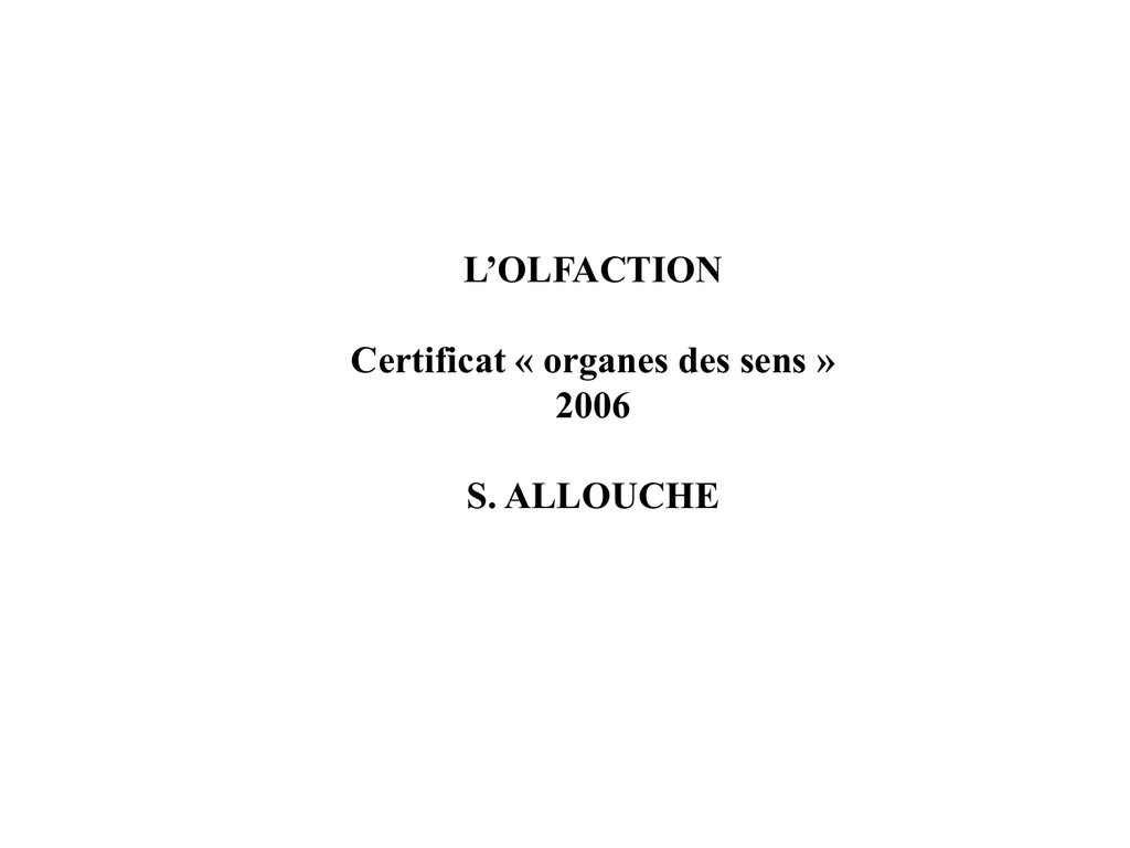 Définition : l’olfaction c’est la détection de molécules odorantes (substances