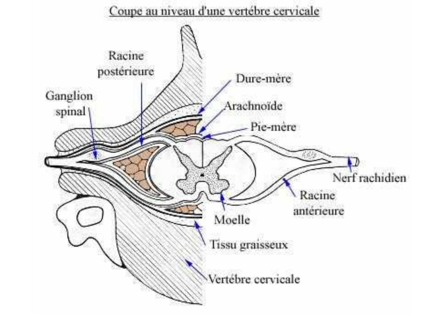 épinière). Il est protégé et nourri par les méninges et le liquide céphalo-rachidien.