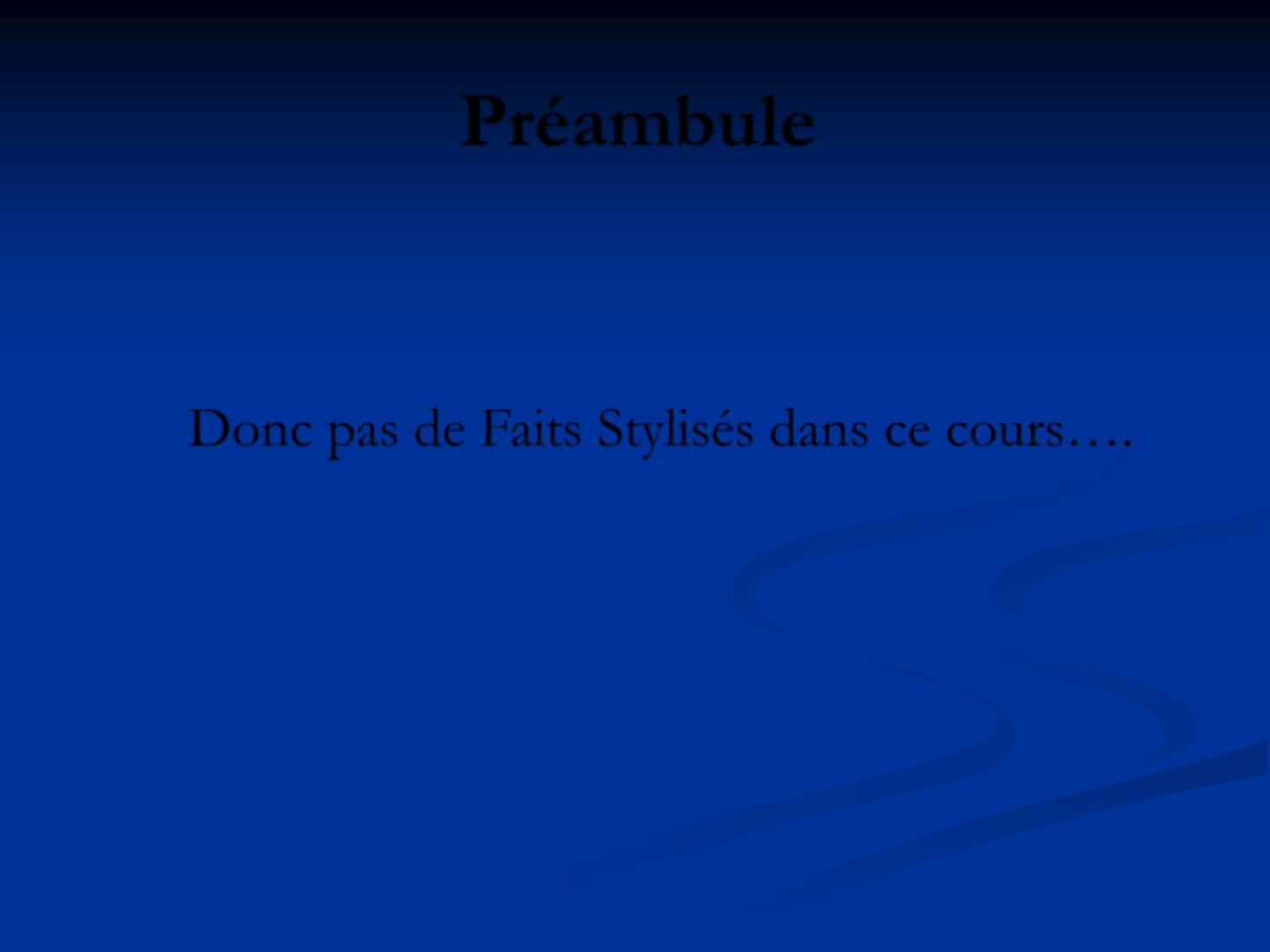 Donc pas de Faits Stylisés dans ce cours….