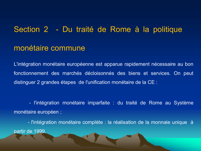 - l'intégration monétaire imparfaite : du traité de Rome au Système