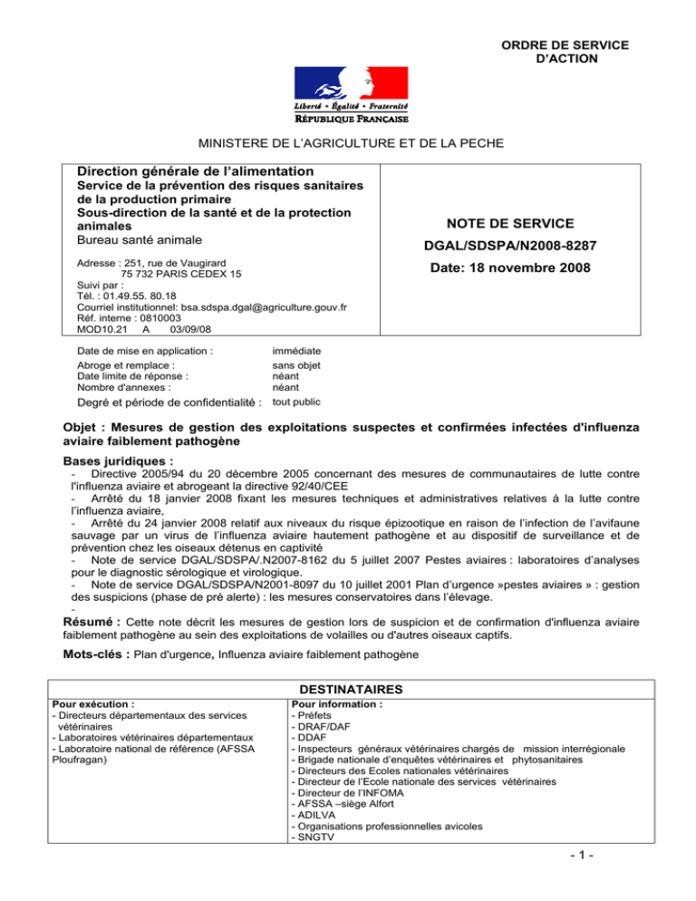 d’IAFP dans un élevage entraîne des mesures de gestion détaillées dans cette note de service.