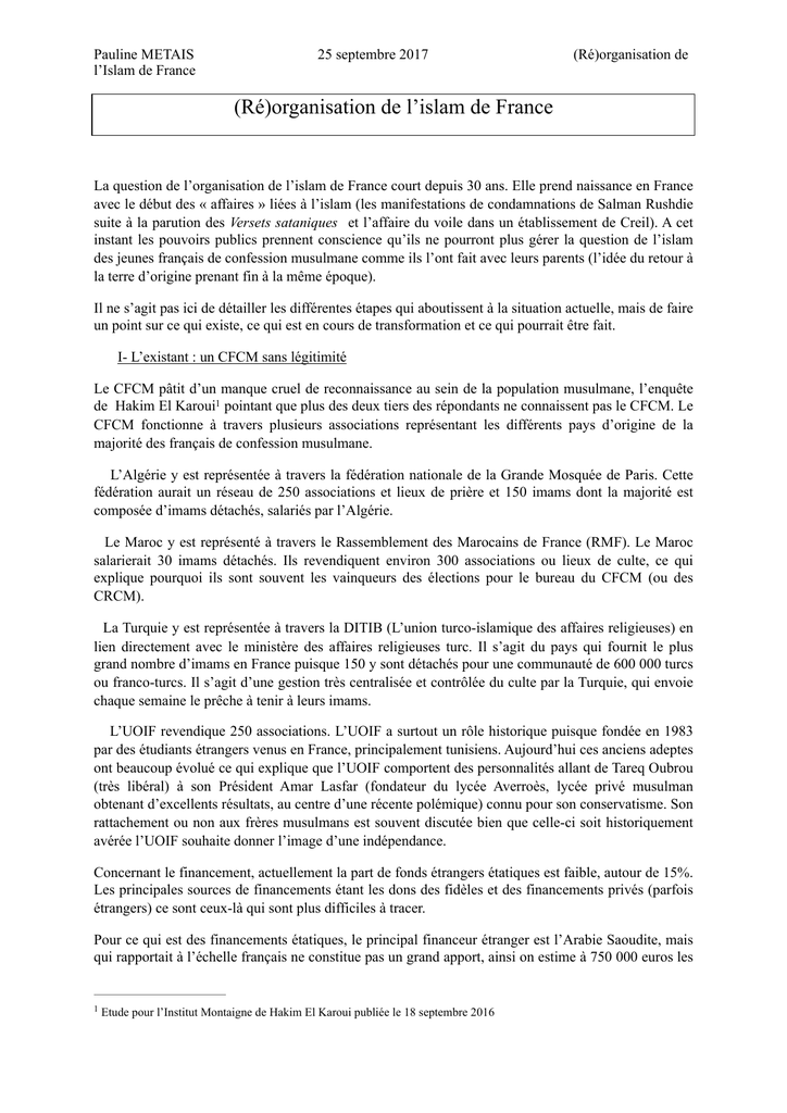 détachés. Là aussi ce ne sera pas facile car il y a des enjeux diplomatiques, les imams détachés étant