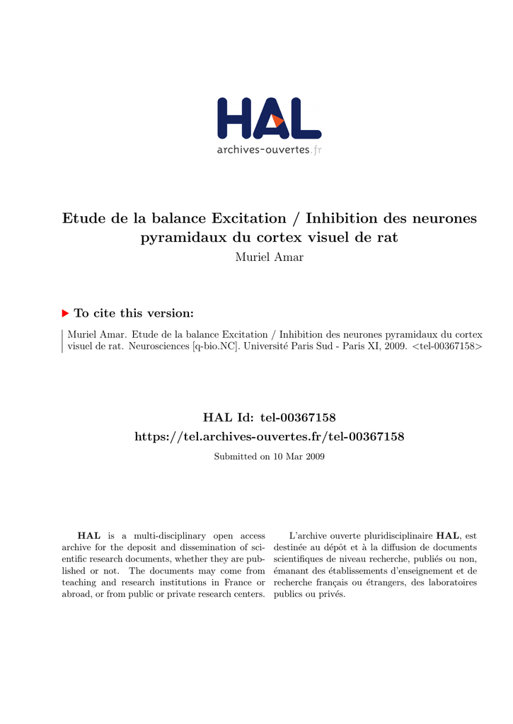 Alexandre Moreau, Muriel Amar, Nicolas Le Roux1, Nicolas Morel and Philippe Fossier (2008). Fine-tuning of the cortical excitation-inhibition balance. Journal