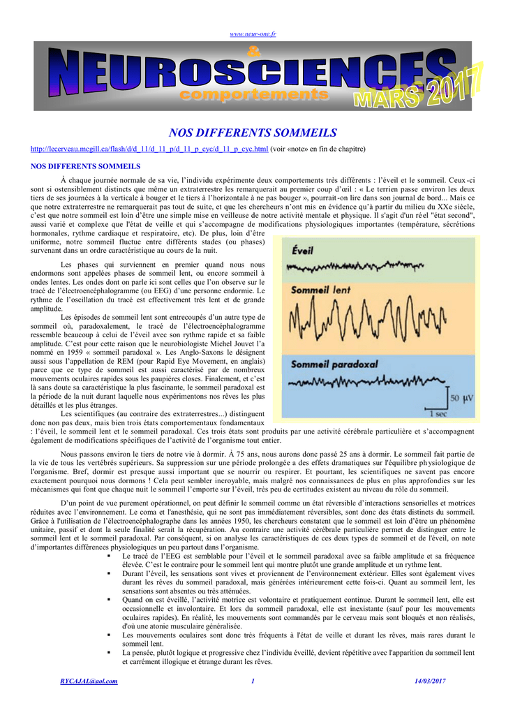 durant les rêves du sommeil paradoxal, mais générées intérieurement cette fois-ci. Quant au sommeil lent, les