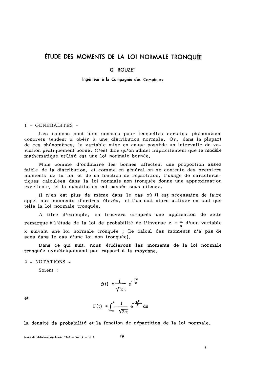 Revue de statistique appliquée, tome 10, no2 (1962), p. 49-61