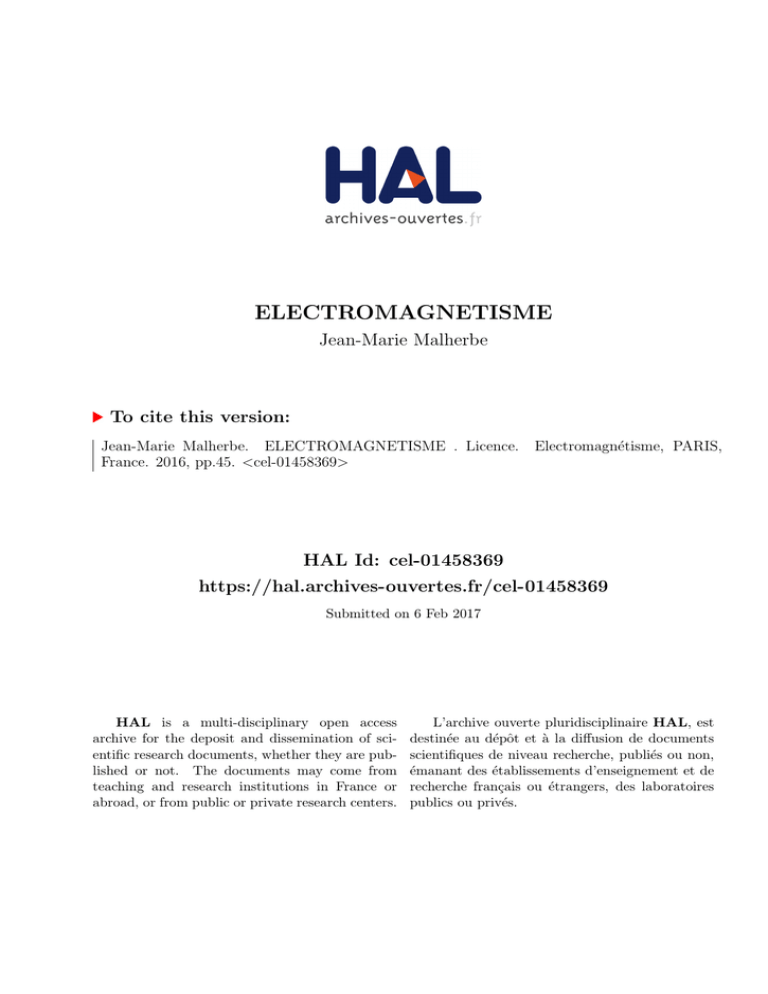 ELECTROMAGNETISME (cours niveau L2, 2016)