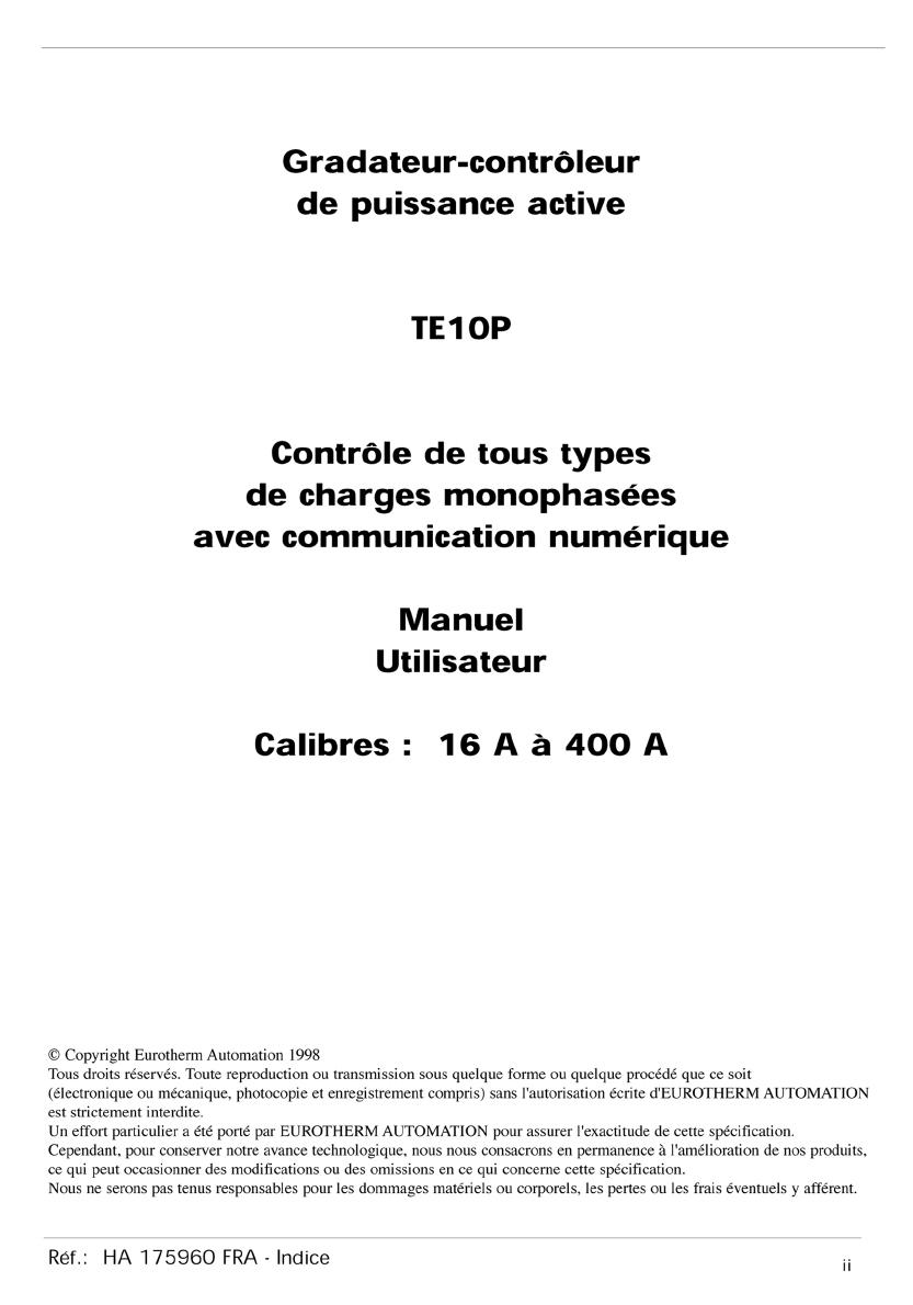 Eurotherm Automation S.A. Service régional . . . . . .11-4