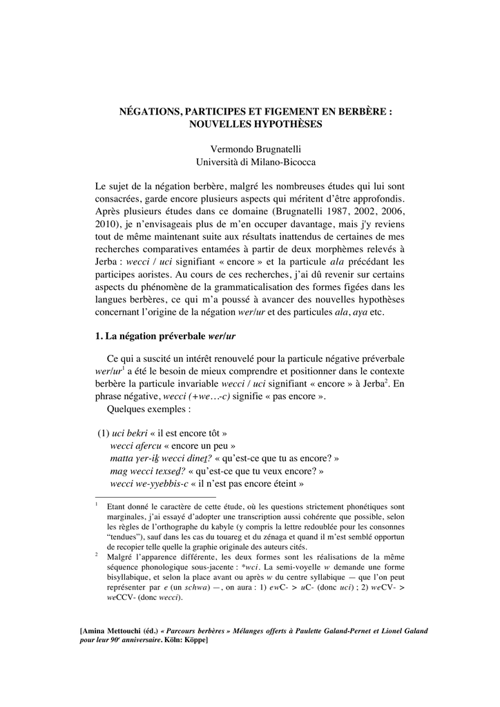 verbe ar du tamazight du Maroc central. Selon lui, «!la particule de négation