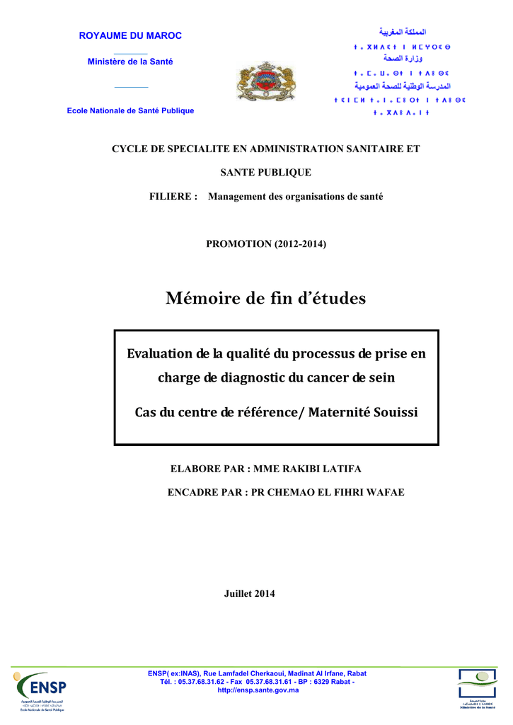 prise en charge de diagnostic du cancer du sein au niveau de centre de référence