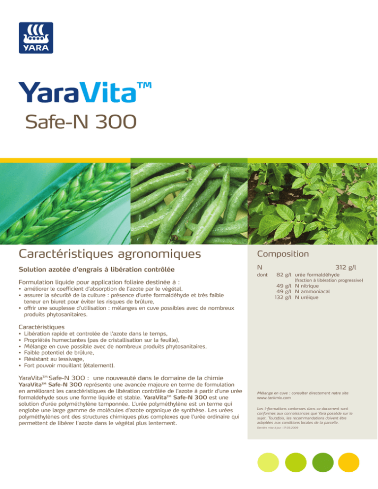 libération progressive, le reste étant sous forme uréique, nitrique et ammoniacale. YaraVitaTM Safe-N 300 est une solution de