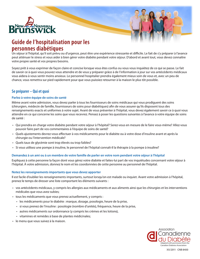 longtemps au service d’urgence, de sorte qu’il serait utile qu’une personne vous apporte vos fournitures pour diabétiques et