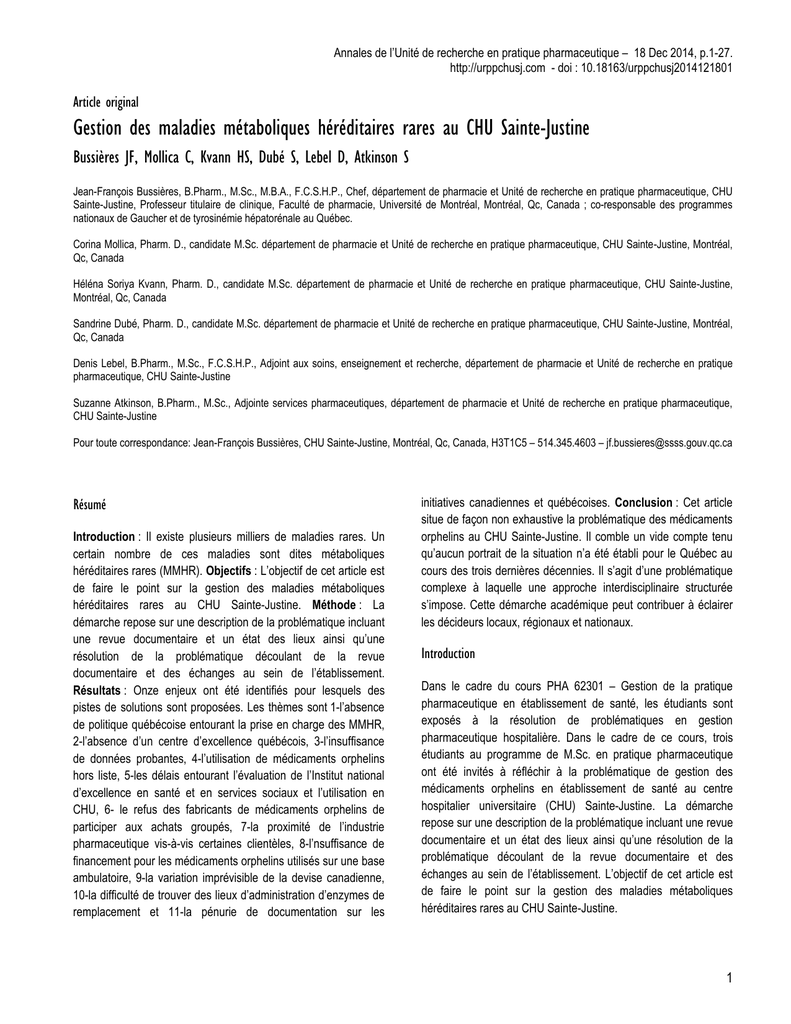 Annales de l’Unité de recherche en pratique pharmaceutique – 18 Dec 2014, p.1-27.