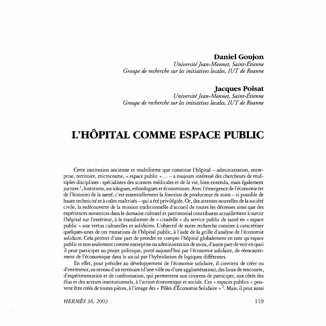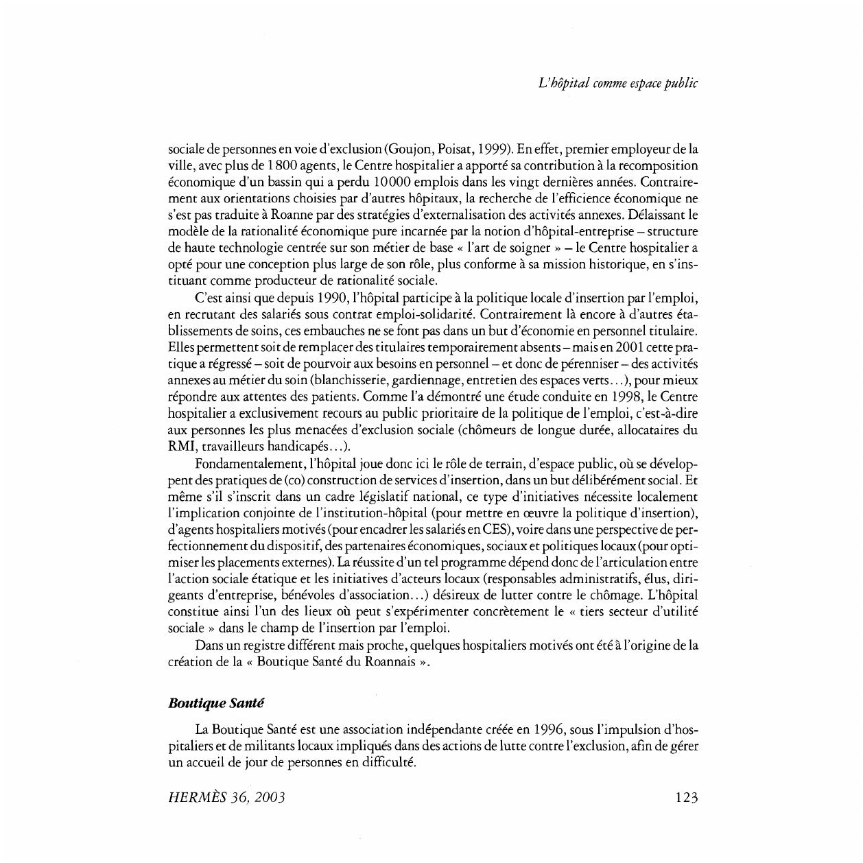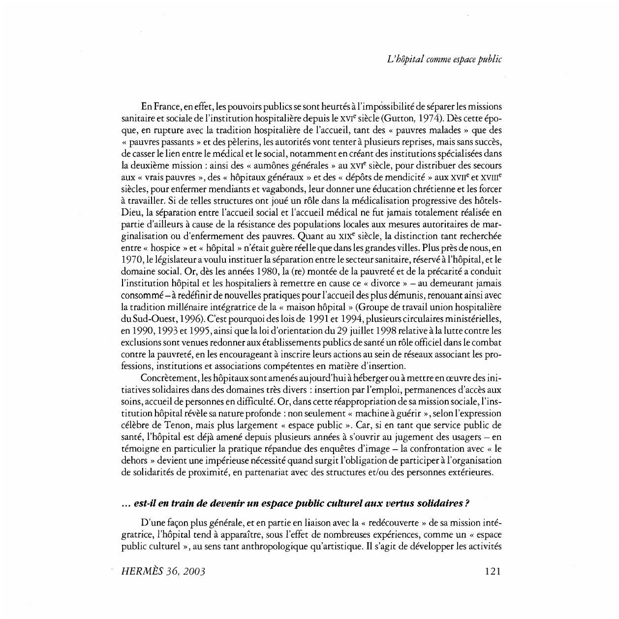 gratrice, l'hôpital tend à apparaître, sous l'effet de nombreuses expériences, comme un « espace