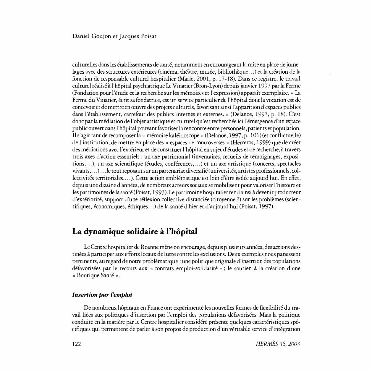 l'institution hôpital et les hospitaliers à remettre en cause ce « divorce » - au demeurant jamais