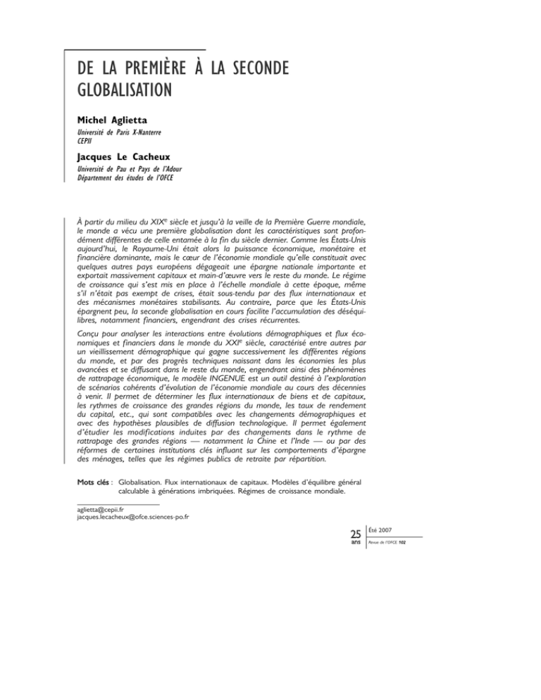 liers de la « seconde globalisation » et d’identifier ce que pourraient