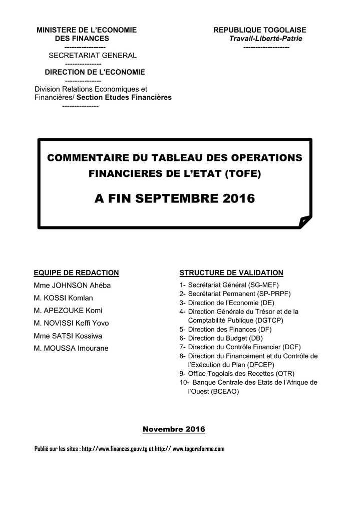 format TOFE. Le présent commentaire, publié sur le site web officiel du ministère de