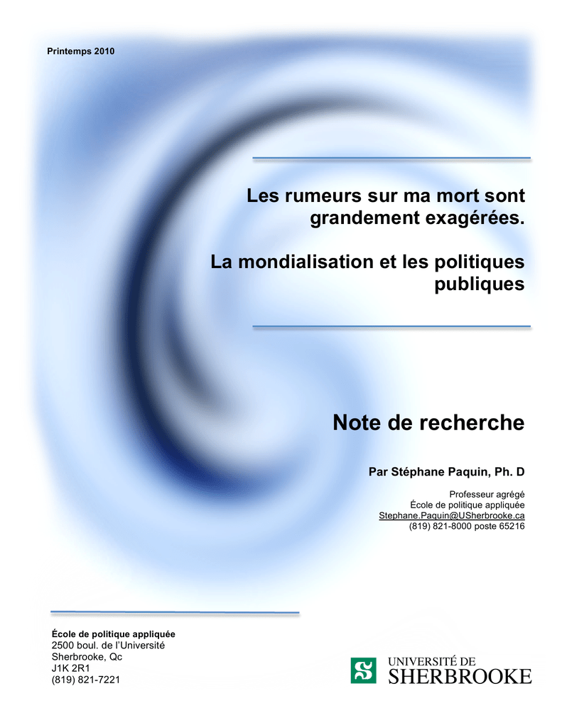 face la mondialisation. Ainsi, pour une majorité de spécialistes, la mondialisation et les politiques