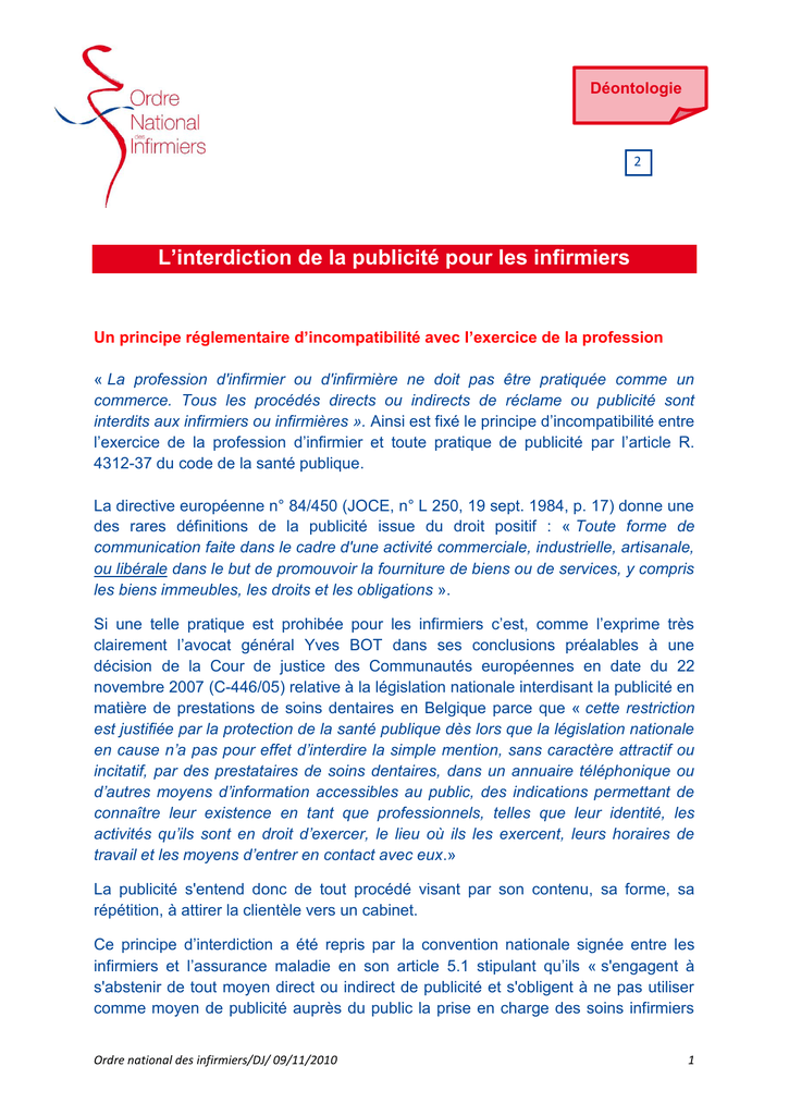 Ordre national des infirmiers/DJ/ 09/11/2010 4