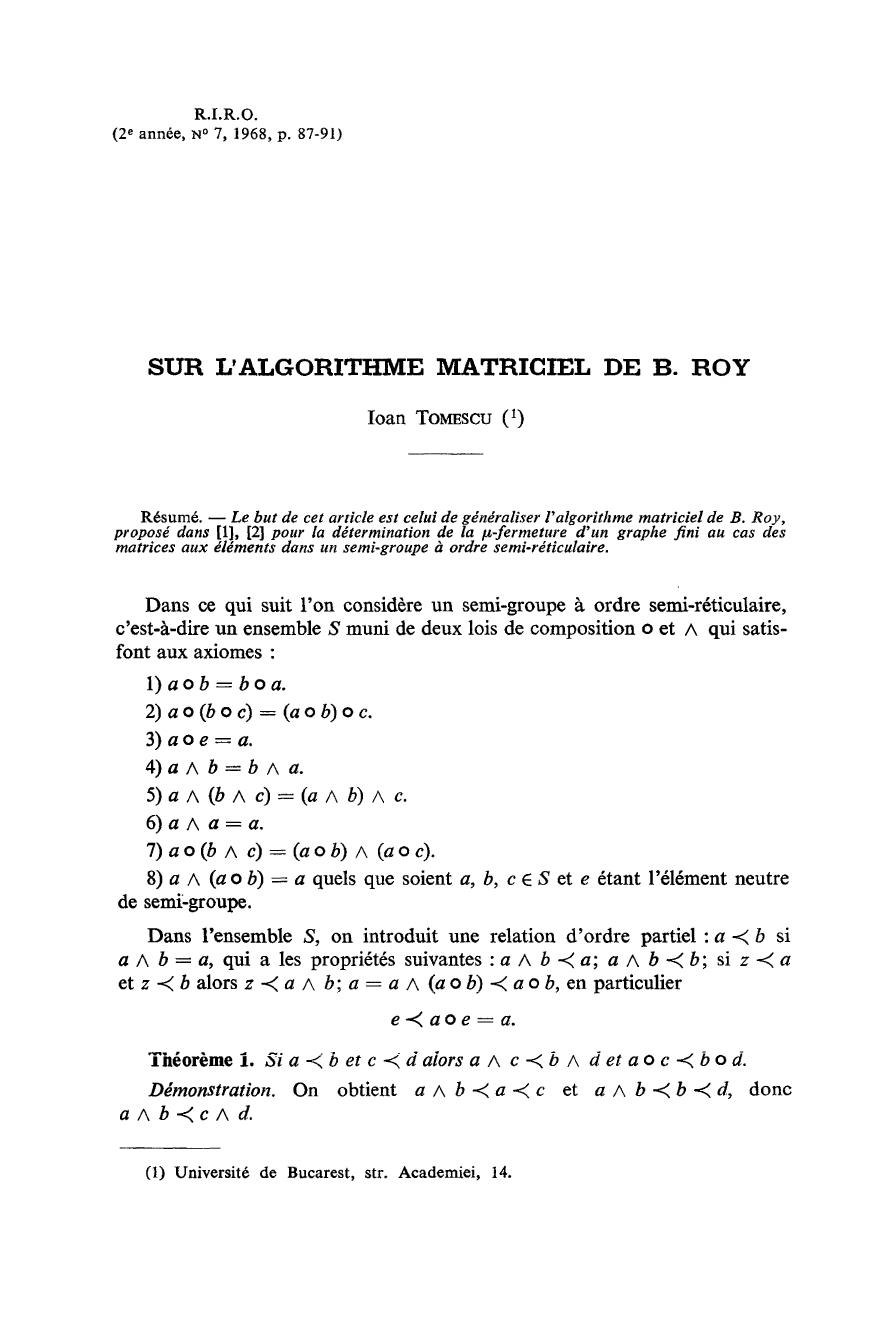 l'algèbre booléenne { 0, 1 } et (o, A, -<, é) sont respectivement (•, U, >s 1).