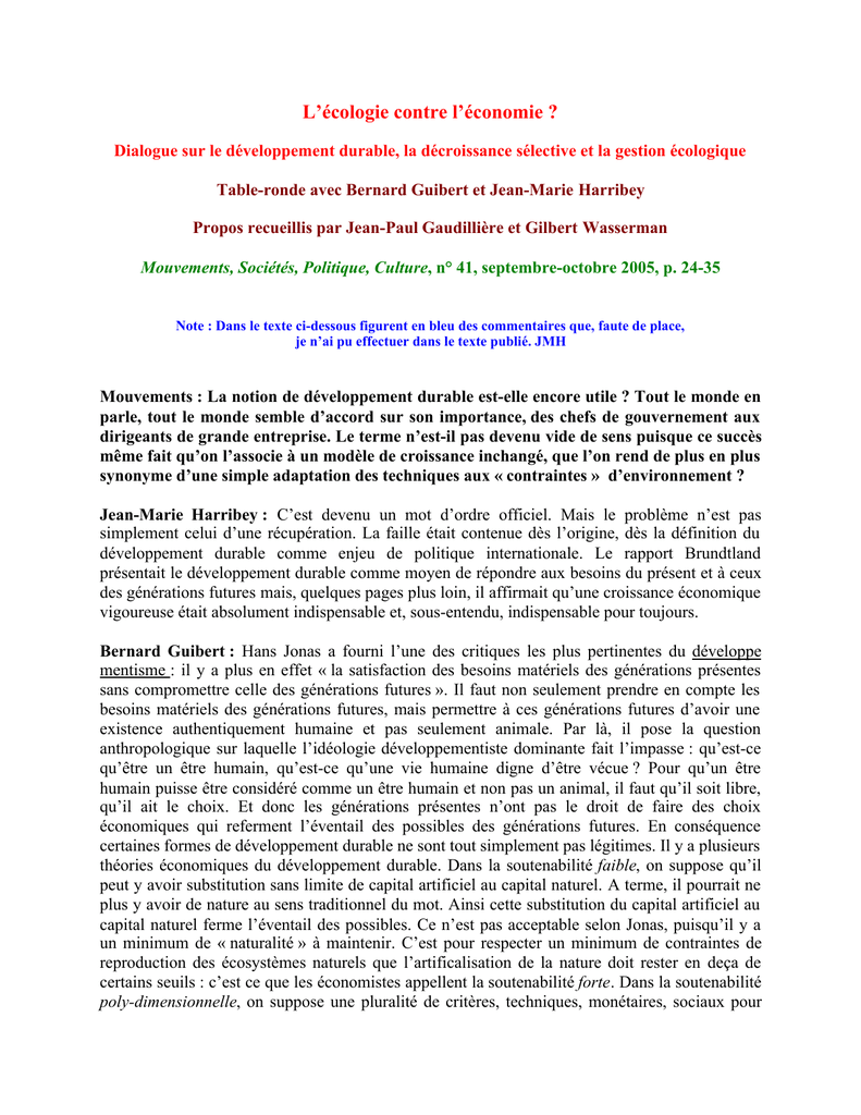 sociale. [Bernard Guibert commet un contresens en voulant mettre en évidence un non sens.
