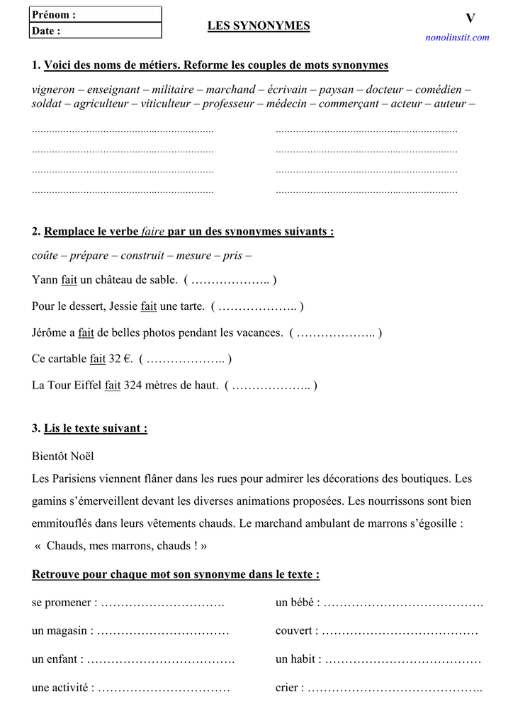 1. Voici des noms de métiers. Reforme les couples de mots synonymes