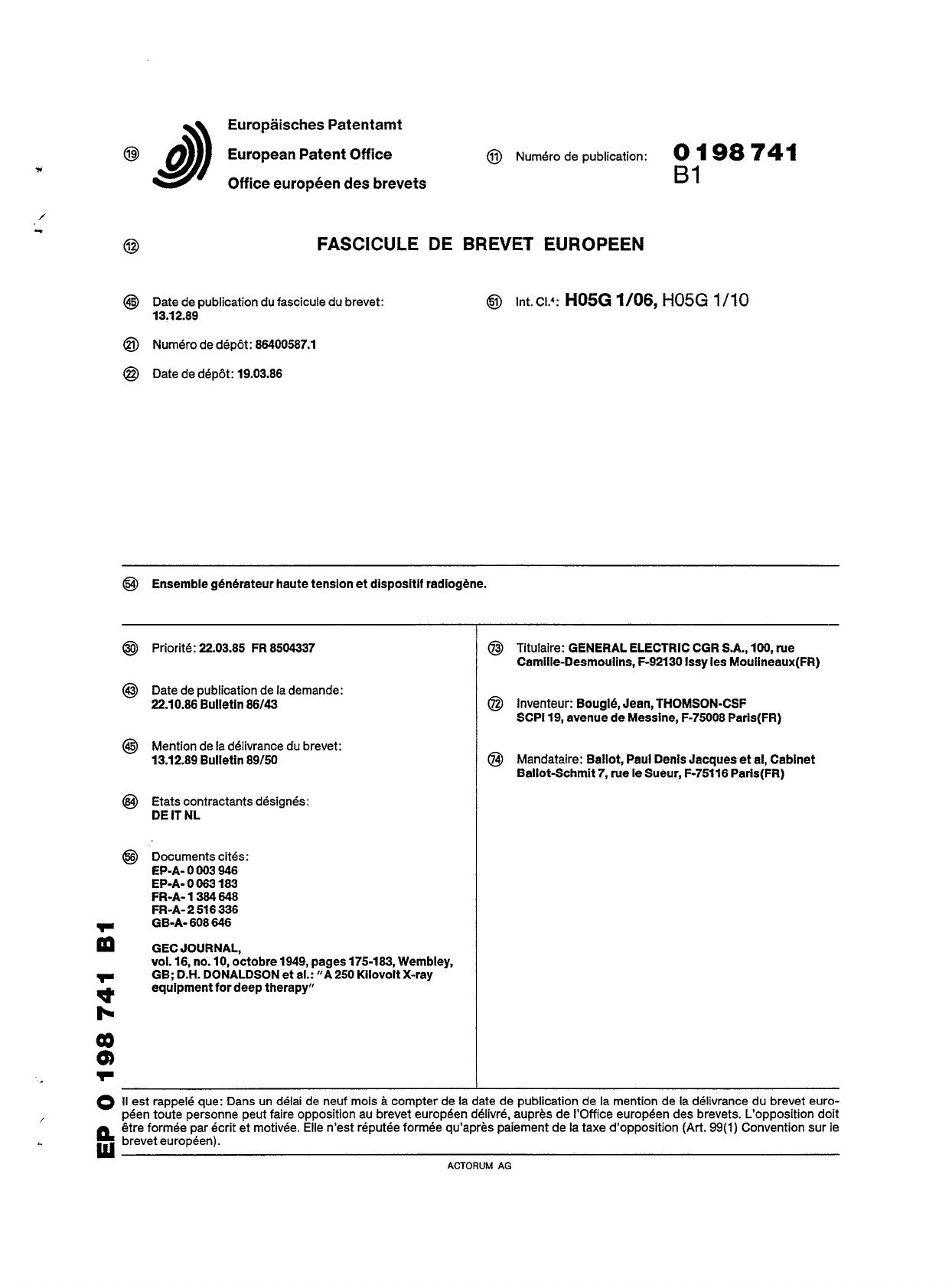 tube radiogène 3, de type unipolaire, l'anode 5 étant